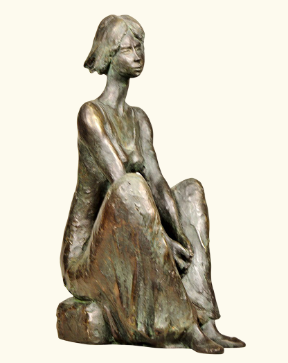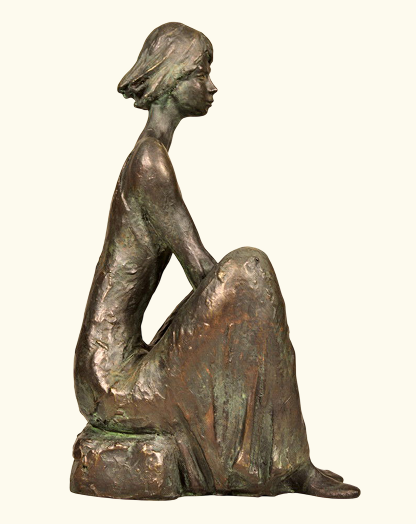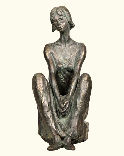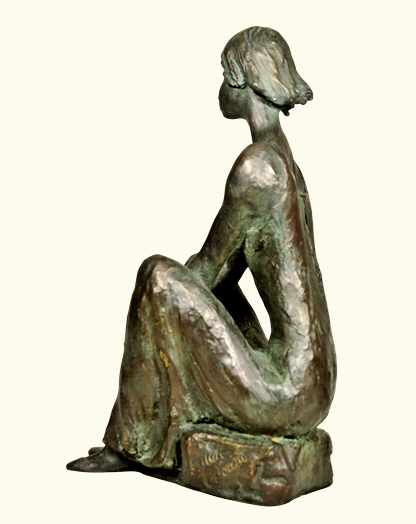 33 cm/13,2″ ht. – 3,30 kg wt. Estatua de metal, mujer sentada en el suelo, compre un regalo de Navidad hecho a mano SI ESTÁ INTERESADO EN ESTA ESCULTURA, CONTÁCTENOS (vea el PIE DE PÁGINA o el SOBRE en la esquina superior derecha de esta página)